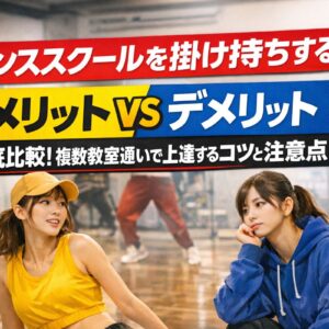 「ダンススクールを掛け持ちしたいけれど、どんなメリットやリスクがあるのだろう?」と不安に思う方も多いのではないでしょうか。近年では、子供から大人まで幅広い世代で、複数のダンス教室やスタジオに通う人が増...