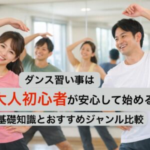「ダンスを始めてみたいけれど、年齢や未経験が不安…」そんな悩みを抱えていませんか?実際、多くのダンススクールやダンススタジオでは大人からダンスを始める初心者の方が増えており、社会人や主婦...